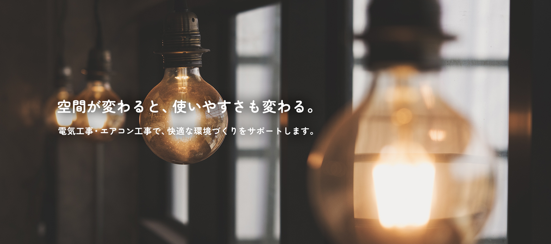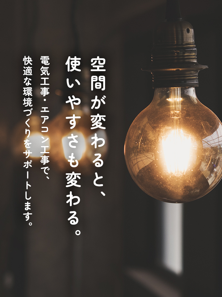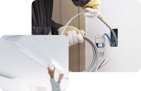 電気工事や照明工事、エアコンの設置・移設・撤去など、日常に欠かせない設備工事を通して、使いやすく快適な空間づくりをサポートします。
