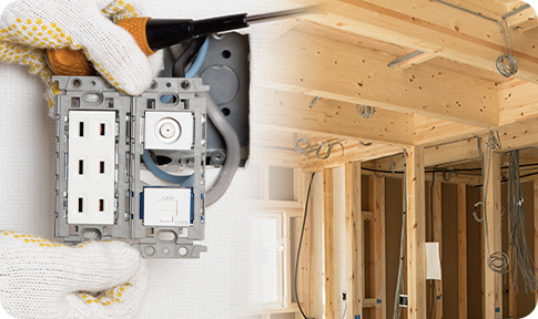 コンセントやスイッチの増設・交換、照明器具や分電盤の施工など、住宅・店舗・施設のあらゆる電気工事に対応。安全で丁寧な施工を提供します。